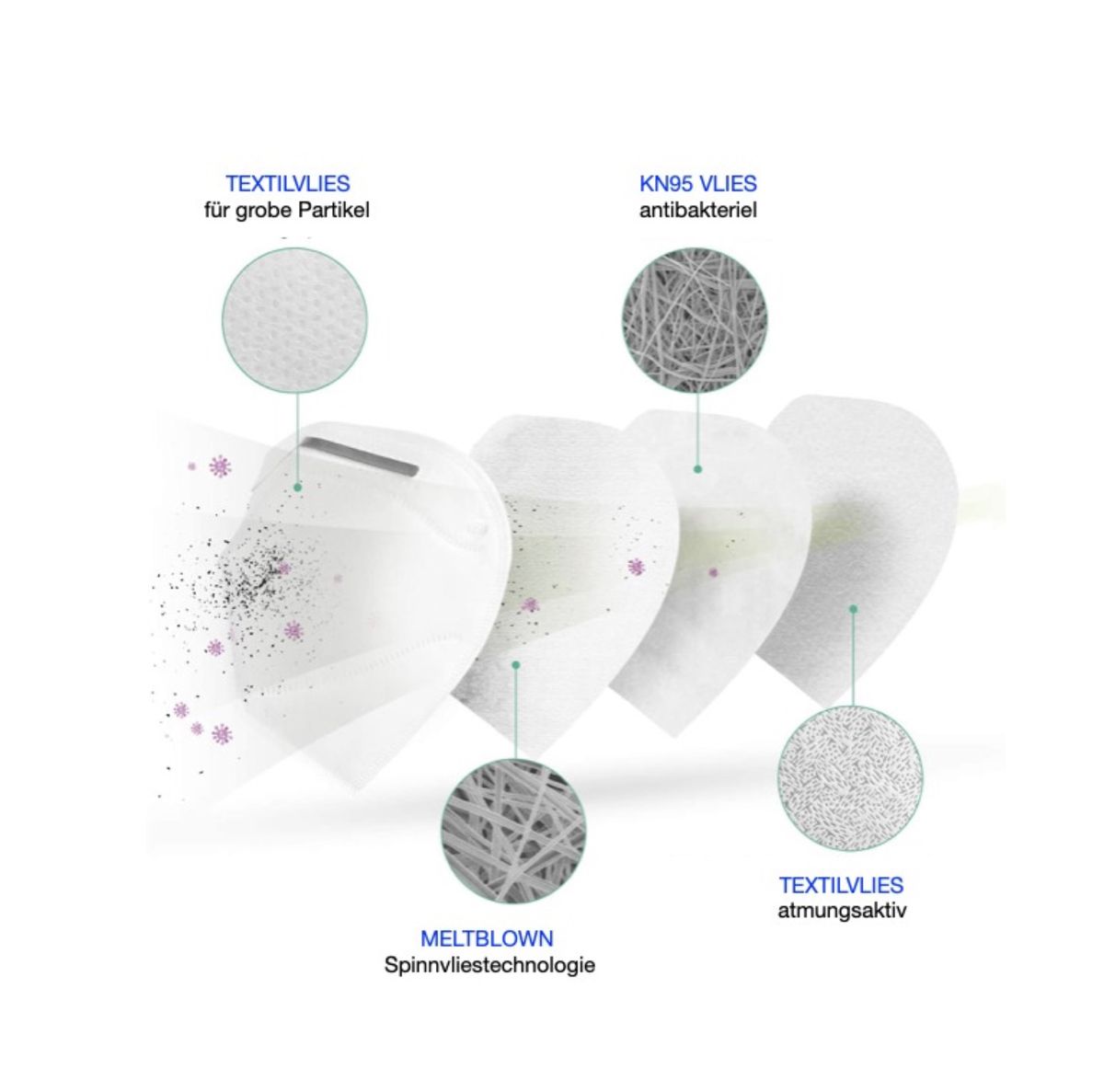 5x Mundschutz Atemschutz Maske KN95 95% Filterleistung FPP2 vergleichbar 4-lagig