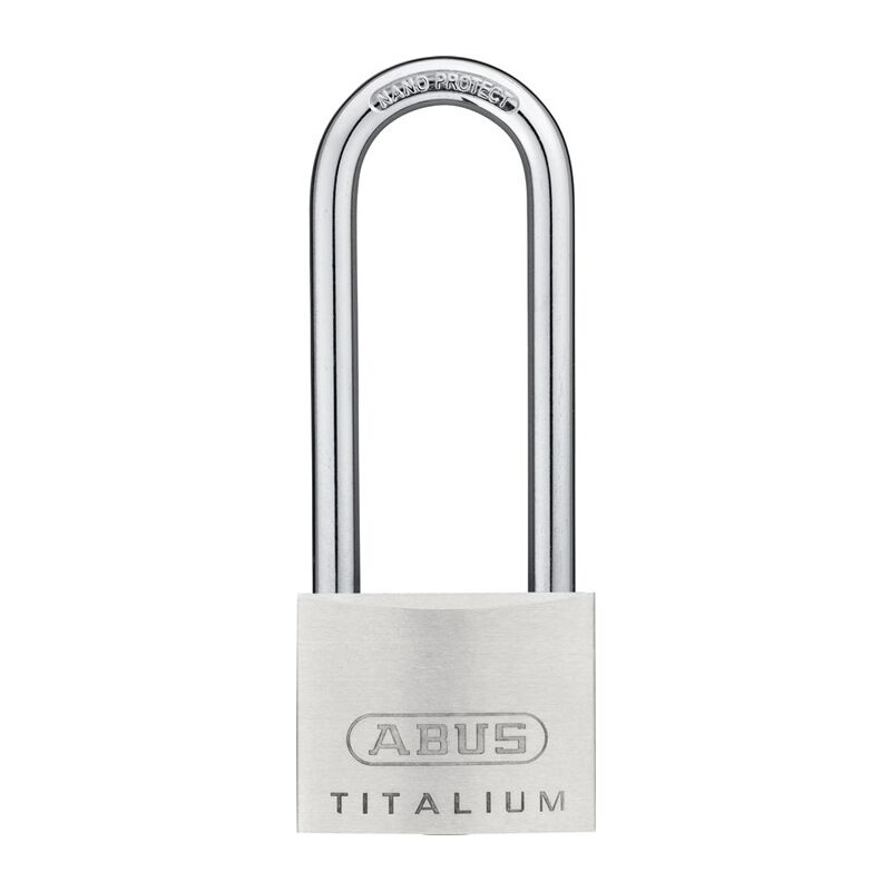 Massiver Schlosskörper aus TITALIUM™ Spezialaluminium · ab 3 mm Spezialstahlbügel mit NANO-Protect™ · Beschichtung (kleinere Größen mit gehärtetem Stahlbügel) · ab 3 mm doppelte Bügelverriegelung