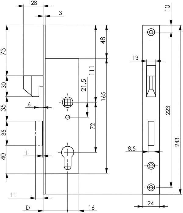 PZW-Ausführung · 1-tourig · mit Wechsel · verzinkt · passend für Schiebtor-Schlosskasten 140S