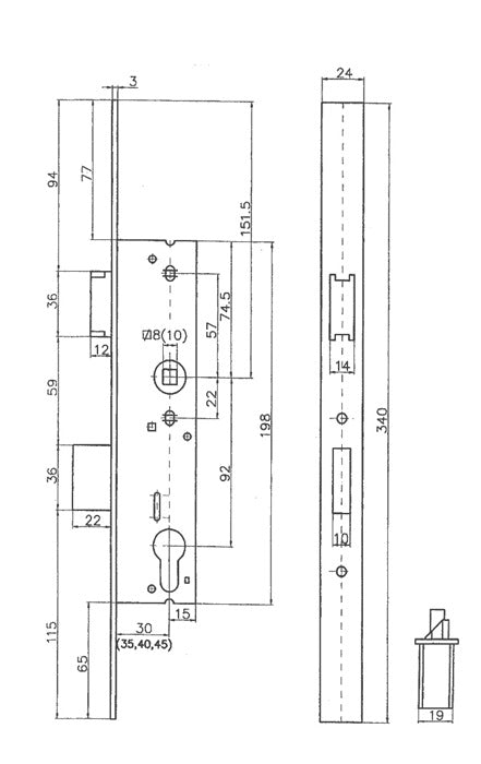 Bever Rohrrahmen-Einsteckschloss ( 3000251216 ) PZW 24/35/92/10 mm DIN links / rechts Riegelausschluss 22 mm 340 mm