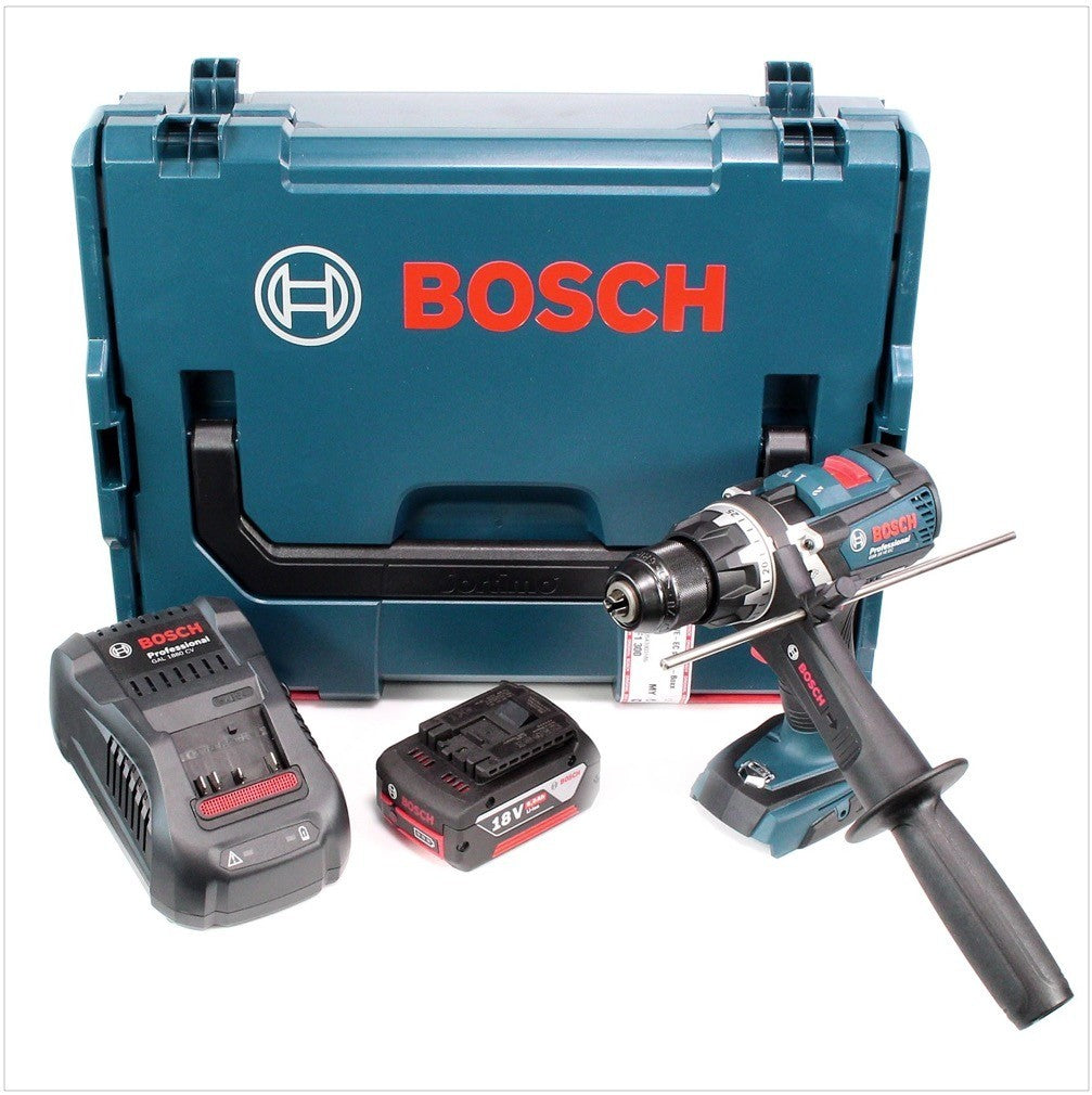 Der Bosch GSR 18 VE-EC Professional Akku-Bohrschrauber überzeugt durch sein hochwertiges 13 mm - Metallbohrfutter und den bürstenlosen, kraftvollen EC-Motor. Durch seine kompakte und ergonomische Bauform und den Rechts-/Linkslauf ist das Gerät sehr flexibel und komfortabel einsetzbar. Mit der Präzisionskupplung und der KickBack Control ist ein sauberes und sicheres Arbeiten garantiert. Des weiteren verfügt das Gerät über die Bosch Electronic Cell Protection und Electronic Motor Protection, was den Motor vor Überlastung und die Akkus vor Überlastung, Überhitzung und Tiefentladung schützt. Die automatische Abschaltung bei Blockieren und Überhitzen sorgt für Arbeitsschutz und eine lange Lebensdauer von Motor und Akkus. Darüber hinaus sorgt eine Motorbremse für exaktes Arbeiten bei Serienverschraubung und das 13-mm-Auto-Lock-Bohrfutter ermöglicht das spielend leichte Auswechseln von Werkzeug. Ein integrierte LED-Licht leuchtet den Arbeitsbereich stets optimal aus. Der gummierte Zusatzhandgriff mit Wellenprofil und einfachem Verriegelungsmechanismus sorgt für festen Halt und schnelles An- und Abmontieren. Das Set beinhaltet die Bosch GSB 18 VE-EC Professional, 1x GBA 6 Ah Li-lon Akku, 1x Schnellladegerät mit einer passenden L-Boxx und das Bosch Bohrer Set CYL-5 Robustline 7- teilig ( 2608588167).