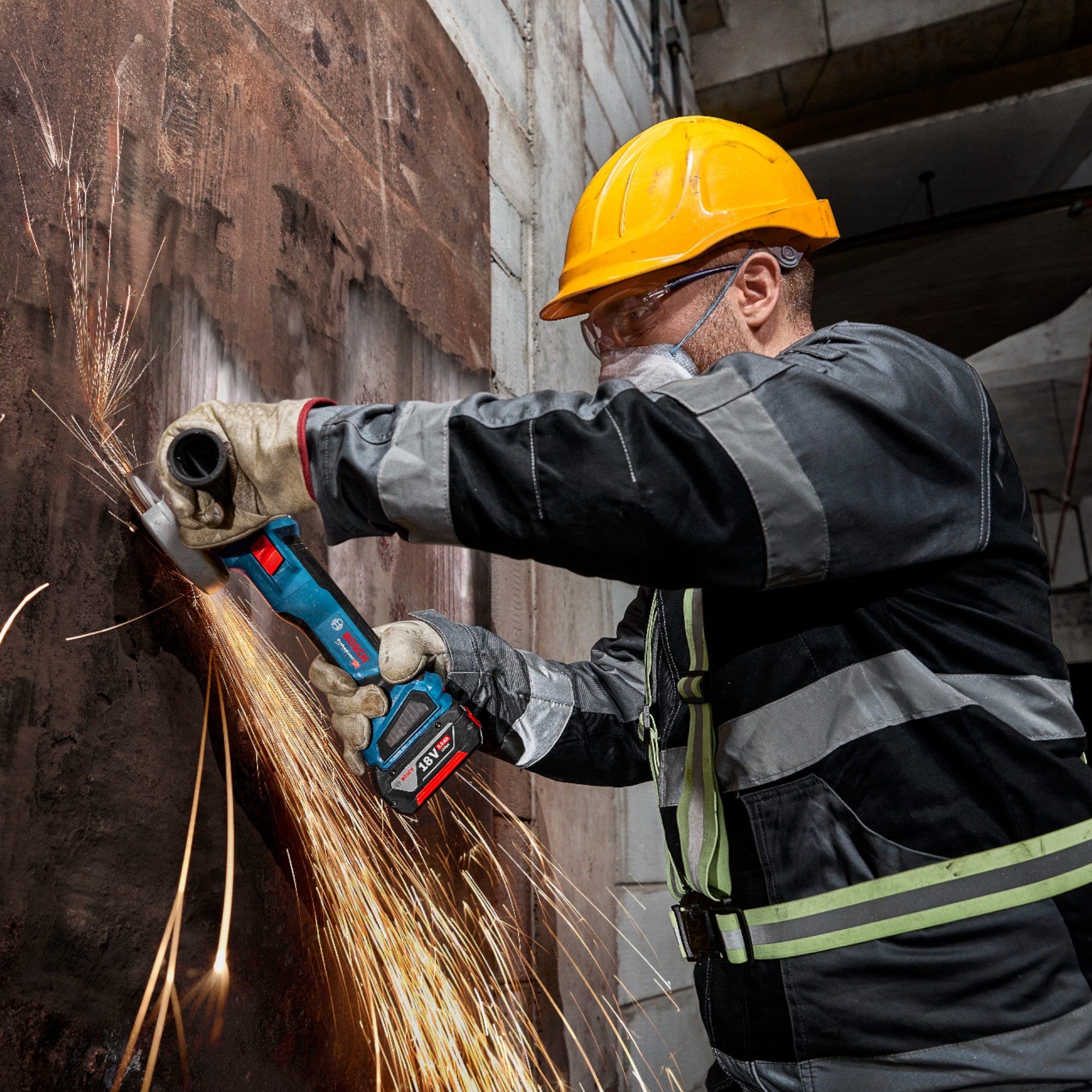 Der Bosch GWS 18V-11 Professional Akku Winkelschleifer ist ein vielseitiger Allrounder mit ausbalanciertem Design, der sich für ein breites Einsatzspektrum eignet. Mit der Leistung eines 1.100-Watt-Kabelgeräts und optimierter Überlastkapazität überzeugt er durch hervorragende Langlebigkeit – ideal für leichte bis mittelschwere Trenn- und Schleifarbeiten wie Entgraten, Rostentfernung oder Leitungsreparaturen. Für mehr Komfort sorgt der Anti-Vibrationshandgriff in Kombination mit einem schmaleren, längeren Griff, wodurch Ermüdung deutlich reduziert wird. Zahlreiche integrierte Sicherheitsfunktionen minimieren zudem das Verletzungsrisiko. Ob Wartung, Reparatur oder Installationsarbeiten auf der Baustelle – dieser Akku-Winkelschleifer bietet kraftvolle Leistung, hohe Zuverlässigkeit und sicheren Bedienkomfort.
