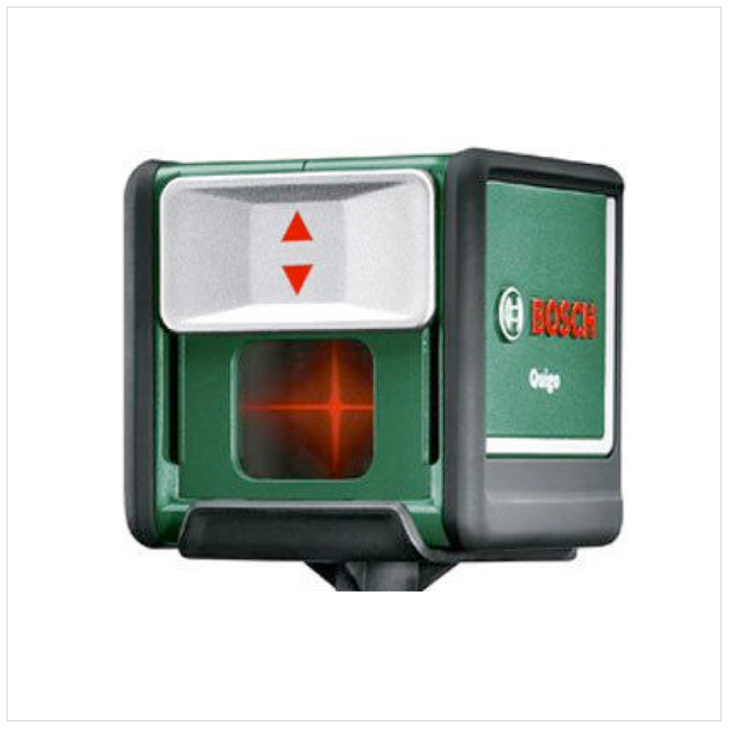 Der Bosch Quigo Kreuzlinienlaser projiziert gleichzeitig eine horizontale und eine vertikale Laserlinie, somit lassen sich zum Beispiel Bohrpunkte, Tapeten oder Fliesen besonders einfach ausrichten. Der Laser projiziert dank Selbstnivellierung immer ein zu 100% gerades Laserkreuz, mit der Neigungsfunktion lassen sich auch schräge Linien abbilden. Die Universalklemme MM2 ermöglicht eine flexible Positionierung des Lasers.