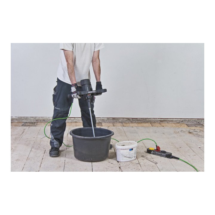 staubgeschützter Elektronikschalter · stufenlose Drehzahländerung · Abdeckkappe mit Labyrinthführung · Dämpfungs- und Schutzelemente · Alu-Getriebegehäuse · für Baustoffe mit niedriger und mittlerer Viskosität wie z. B. Farbe, Leim, Spachtel- und Ausgleichsmasse, Fliesenkleber, Fertigmörtel