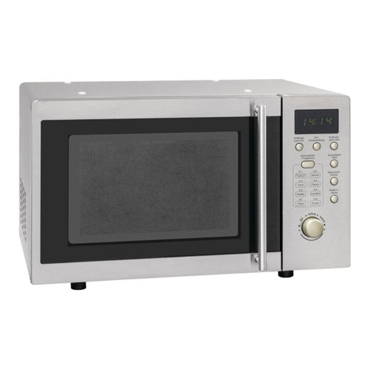 Timer - komfortabel mit digitaler Uhrzeit- und Funktionsanzeige · Autokochprogramme - mühelos voreingestellte Programme nutzen · 1000 Watt - starke Grillleistung · 5 Leistungsstufen für die individuelle Mikrowellenstufe · 20 Liter Edelstahlgarraum · lackiert, Gehäuse Silber, Front Inox · Drehteller 24,5cm Ø · Kabellänge 1 m