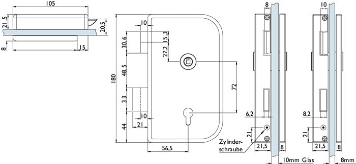HERMAT Glastürschloss 6033 PZ L - Roma Edelstahl matt ( 3000253945 )