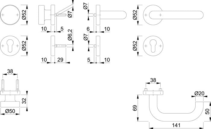 HOPPE Feuerschutzgarnitur Paris FS-E58/42H/42HS/138 Edelstahl F69 D/K ( 3000203109 )