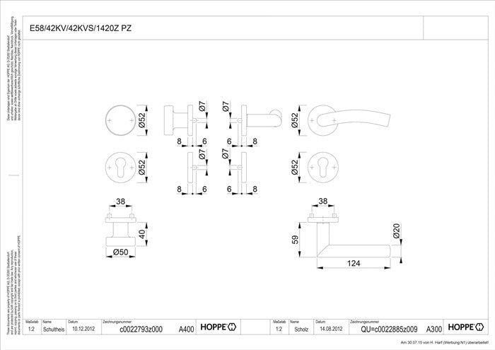 Rosetten-Garnitur mit Schlüsselrosetten · geprüft nach DIN EN 1906: 37-0140A (Gebrauchs-Kategorie Klasse 3), Objekt-Garnitur · Lagerung: Türgriffe lose, Rückholfedern rechts/links verwendbar , wartungsfreie Gleitlager · mit Schnellstift-Verbindung bei D/D mit HOPPE-Vollstift (Loch-/Lochteil), bei K/D mit HOPPE-FDW-Vollstift (Lochteil)· Unterkonstruktion: Kunststoff, Stütznocken · Befestigung: verdeckt, durchgehend, wechselseitig, Mehrzweckschrauben ACHTUNG: bei Wechselgarnituren bitte auf DIN rechts oder links achten!