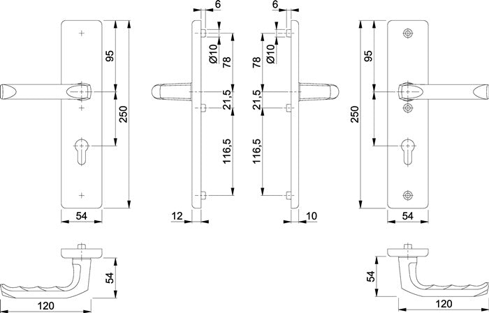 für Abschlusstüren · einbruchhemmend nach DIN 18257 · Außenschild-Randhöhe 12 mm · Stahl-Unterkonstruktion im Außen-und Zamak-Unterkonstruktion im Innenschild · FDW-Profilstift-Verbindung · sichtbare Verschraubung · einschließlich Befestigungsmaterial · Lochung PZ · DIN links / rechts · Widerstandsklasse ES 1