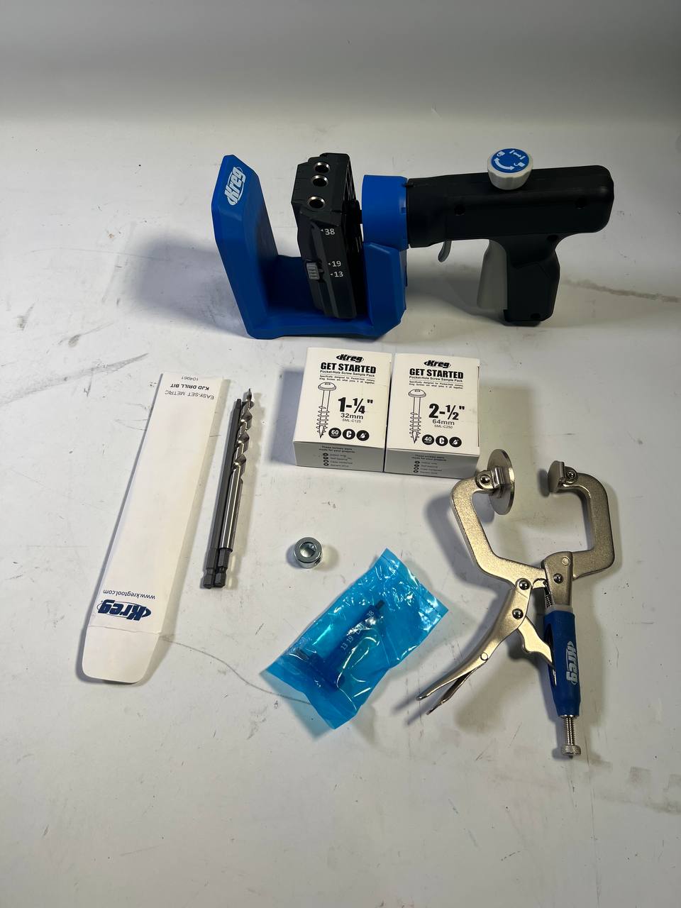 KREG Pocket Hole Jig 520 PRO Taschenloch Bohrschablone ( KPHJ520PRO ) + Stufenbohrer + Bit + Schrauben + Zwinge - Gebraucht