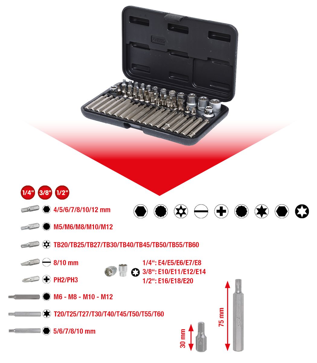 KS TOOLS 1/4"+3/8"+1/2" Torx-Steckschlüssel- und Bit-Satz, 57-tlg ( 911.4305 )