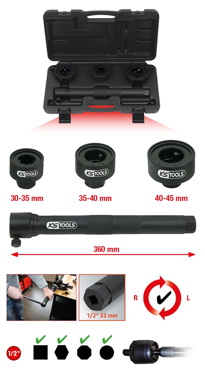 KS TOOLS Axialgelenk-Spezialschlüssel-Satz, 4-tlg ( 150.1125 )