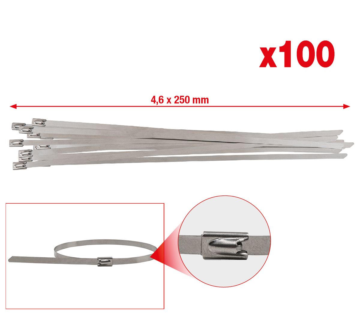 KS TOOLS Edelstahl Kabelbinder mit Kugelverschluss, 4,6x250mm, 100 Stück ( 115.1592 )