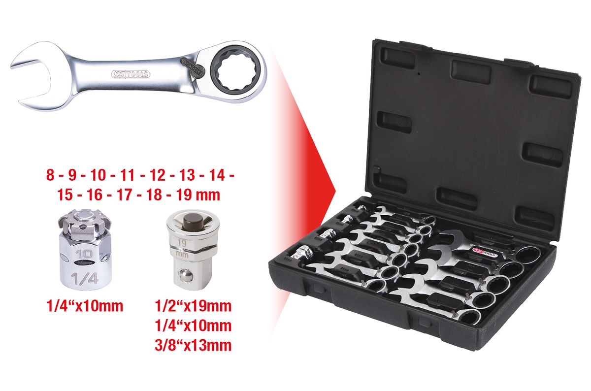 GEARplus® Ratschenringmaulschlüssel-Satz, extra kurzMerkmale: