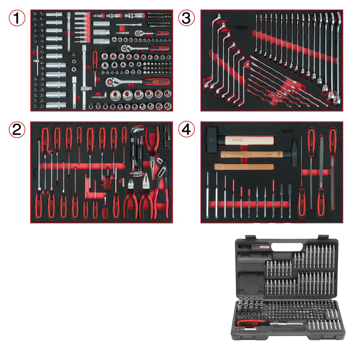 KS TOOLS Universal-Systemeinlagen-Satz für 4 Schubladen mit 515 Premium-Werkzeugen ( 713.0515 )