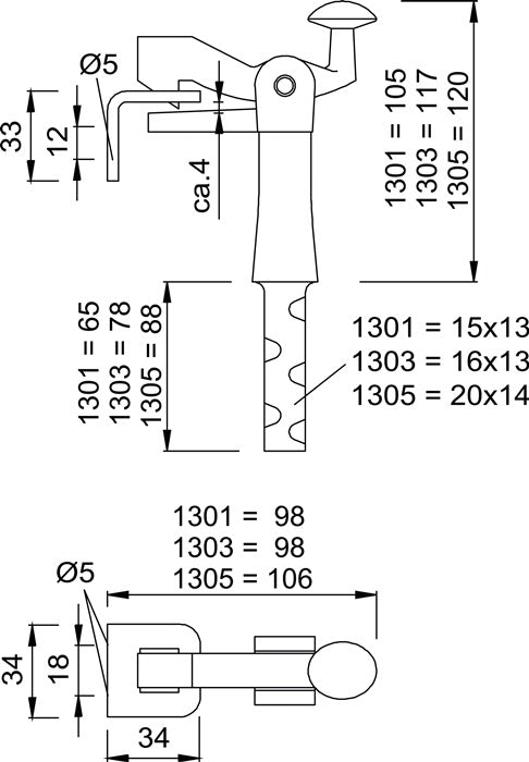 Torfeststeller 1301/1303/1305 Temperguss schwarz