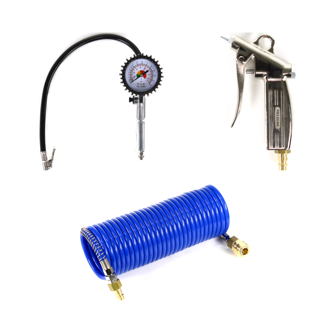 Metabo Basic 160-6 W OF Kompressor 900 W 8 bar + Prebena Spiralschlauch + Blaspistole + Reifenfüller