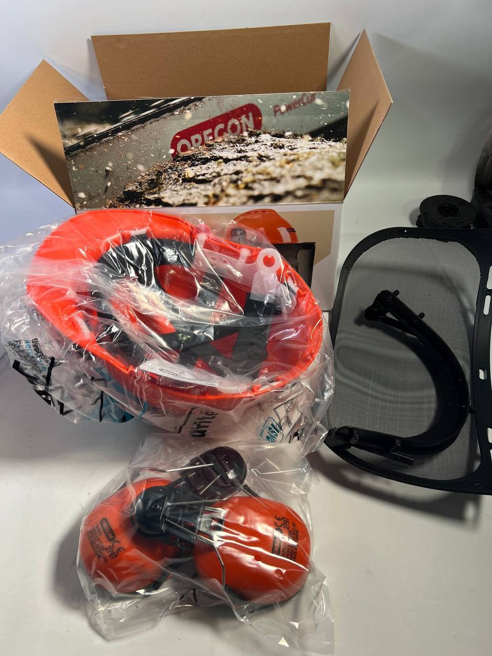 Oregon Kettensägen Schutzausrüstung Set ( 574742A ) mit Schutzhelm / Beinschutz und Handschuhe - Unvollständig