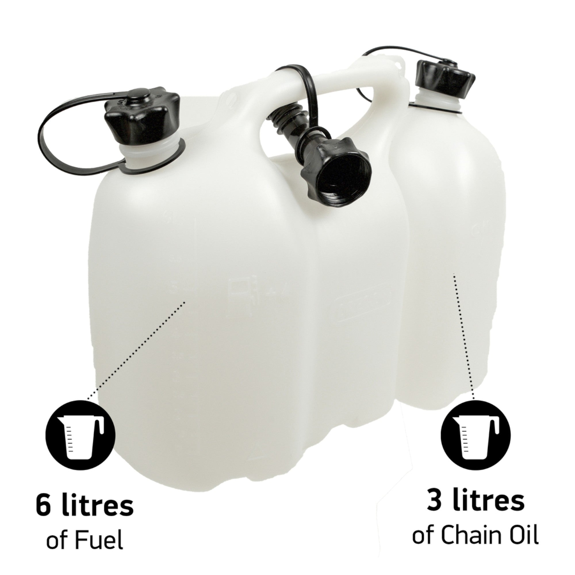 Oregon Kombikanister 6 + 3 l weiß transparent für Kraftstoff und Kettenöl ( 562406 )