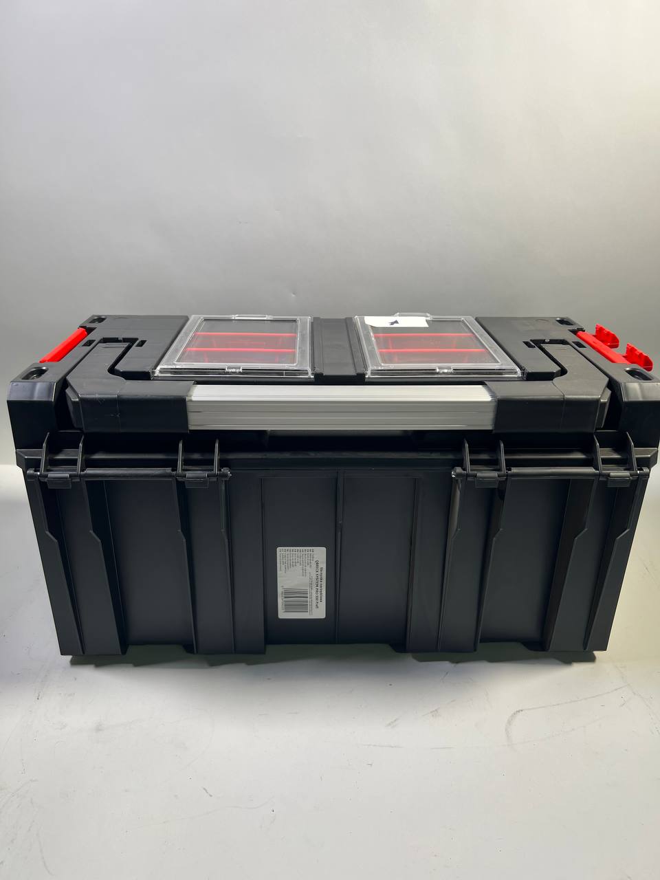PRO 500 ist der kleinste Vertreter einer neuen Generation professioneller Werkzeugkoffer. Die PRO-Linie zeichnet sich durch die in dieser Klasse einzigartige Funktion aus, zwei Boxen mit Polyamidverbindern und einer flexiblen Dichtung miteinander zu verbinden, die einen vollständigen Schutz gegen das Eindringen von Wasser und Staub gewährleistet. Der Profi-Deckel mit zwei Organizern ermöglicht Ihnen die einfache Organisation von kleinem Werkstattzubehör. Ein solider Aluminiumgriff, Polyamid-Verschlüsse und Seitenverbinder sowie ein Polycarbonat-Schieber des Organizers sind Garanten für einen langjährigen störungsfreien Betrieb.