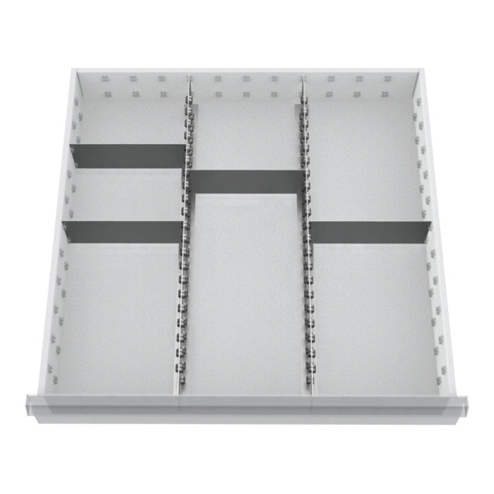 Metalleinteilung für Fronthöhe 200 mm · für Schubladen-Innenmaße B 600 x T 600 mm · 2 Längstrennwand · 4 Quertrennwände