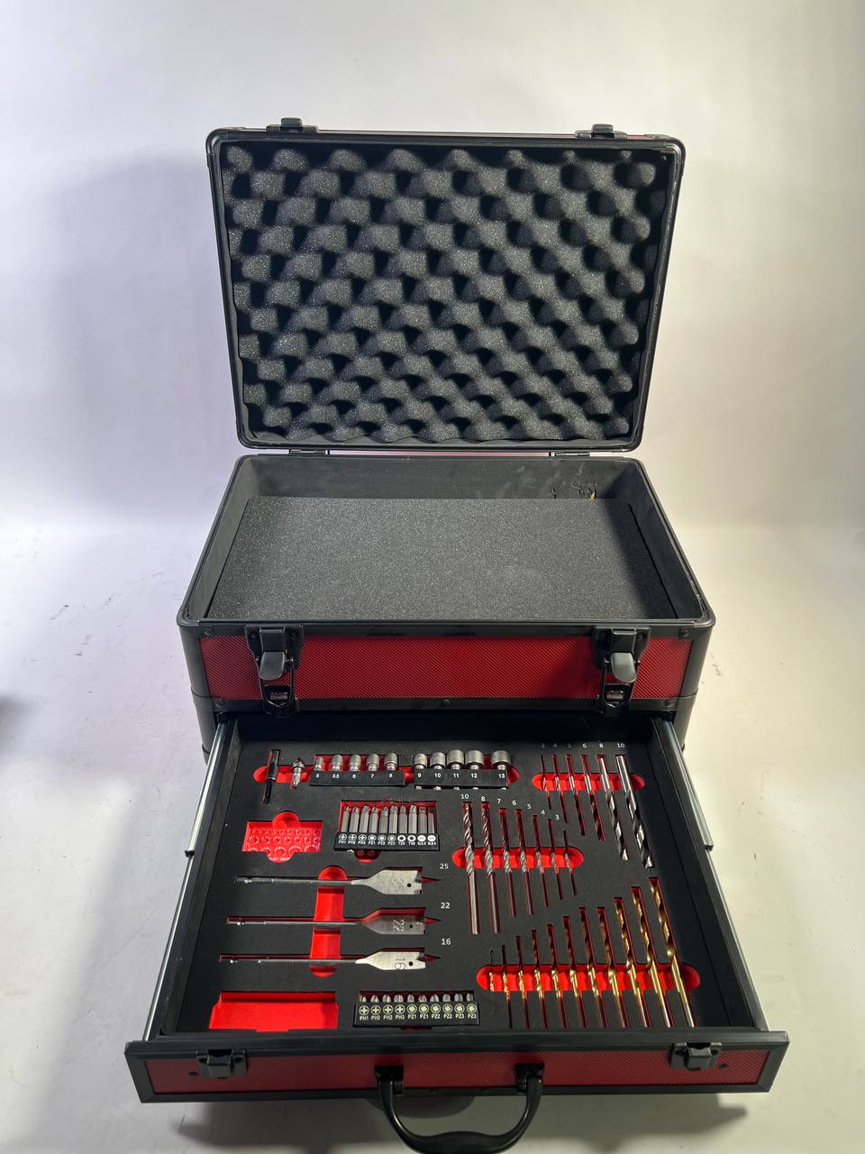 Toolbrothers TX Alu Werkzeug Koffer rot für Akku Schlagschrauber und Schlagbohrschrauber + 70 tlg. Bit Bohrer Set + Würfelschaum Einlage - Unvollständig