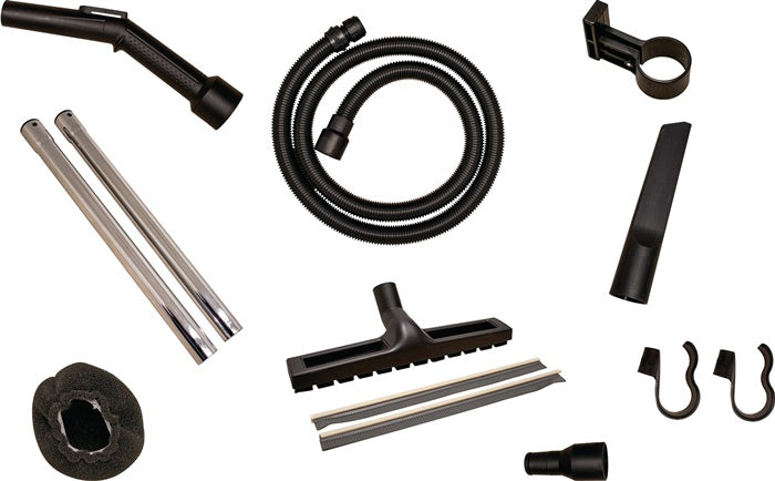 - Tubo di aspirazione 3,5 m / DN 33, tubo manuale con cursore per l'aria secondaria, 2 tubi di aspirazione in acciaio, manicotto per utensili, bocchetta per interstizi, bocchetta per pavimenti umidi/asciutti 350 mm, sacco filtro in pile