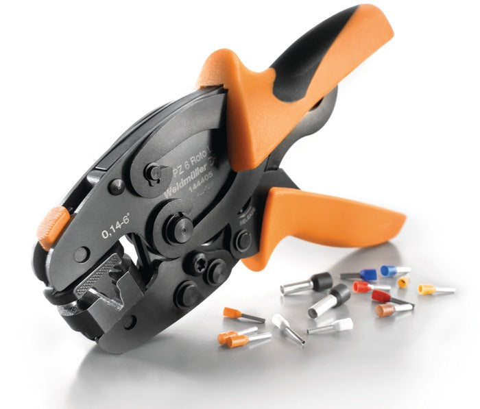 per tagliare, spelare e crimpare capicorda fino a 6 mm² - pinza per crimpare PZ 6 roto L - certificazione UL Contenuto: 1000 capicorda da 1,00 mm², giallo 1,50 mm², rosso 500 capicorda da 0,50 mm², arancione 0,75 mm², bianco 2,50 mm², blu 4,00 mm², grigio 6,00 mm², nero