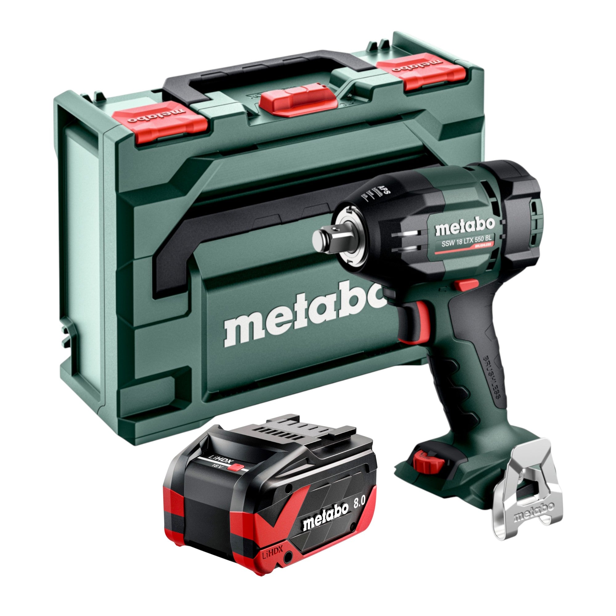 Avvitatore a impatto a batteria Metabo SSW 18 LTX 550 BL 18 V 550 Nm Brushless + 1x batteria LiHDX 8,0 Ah + metaBOX - senza caricabatteria