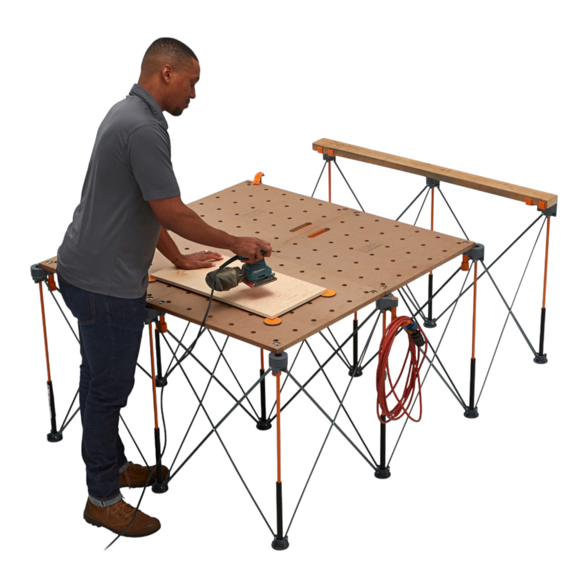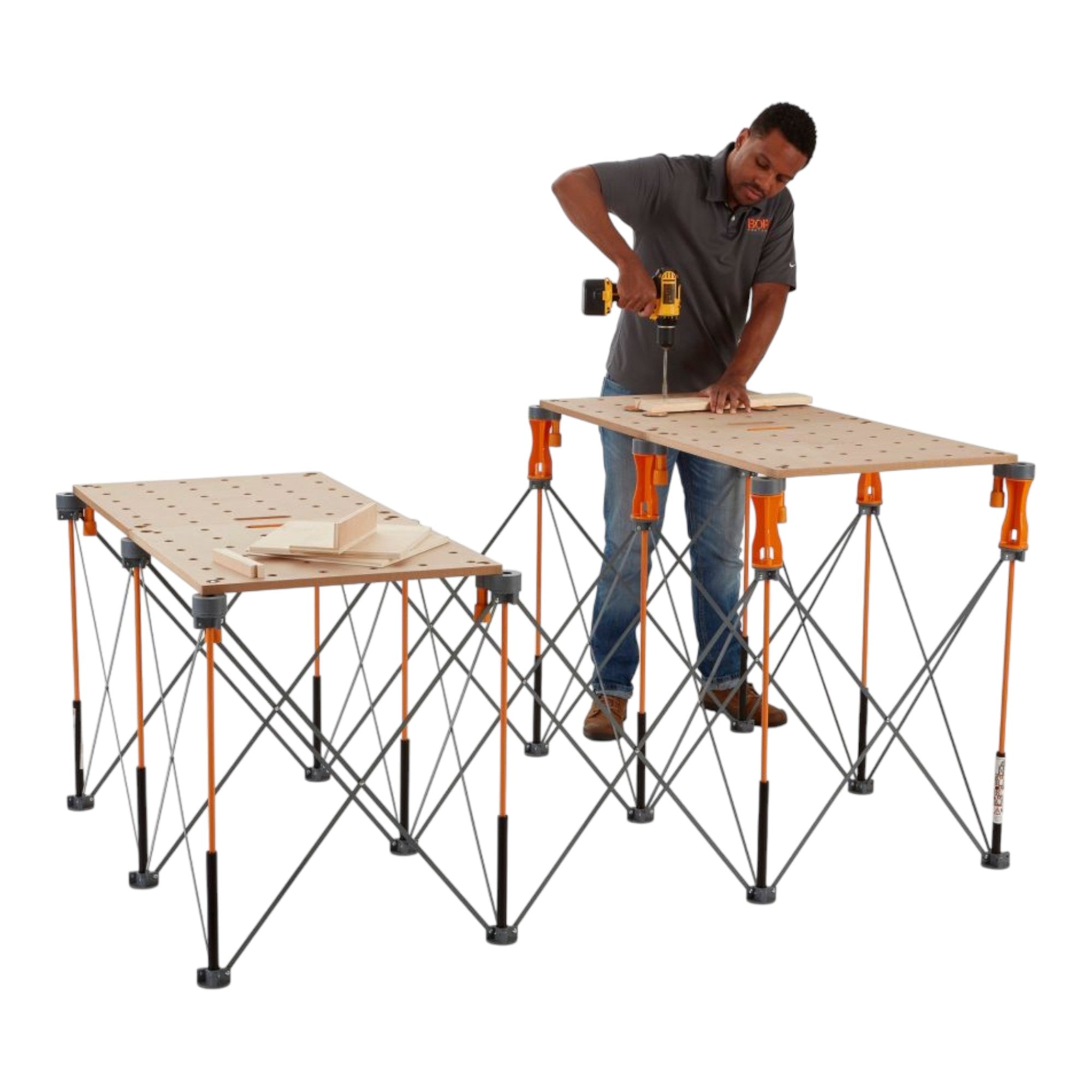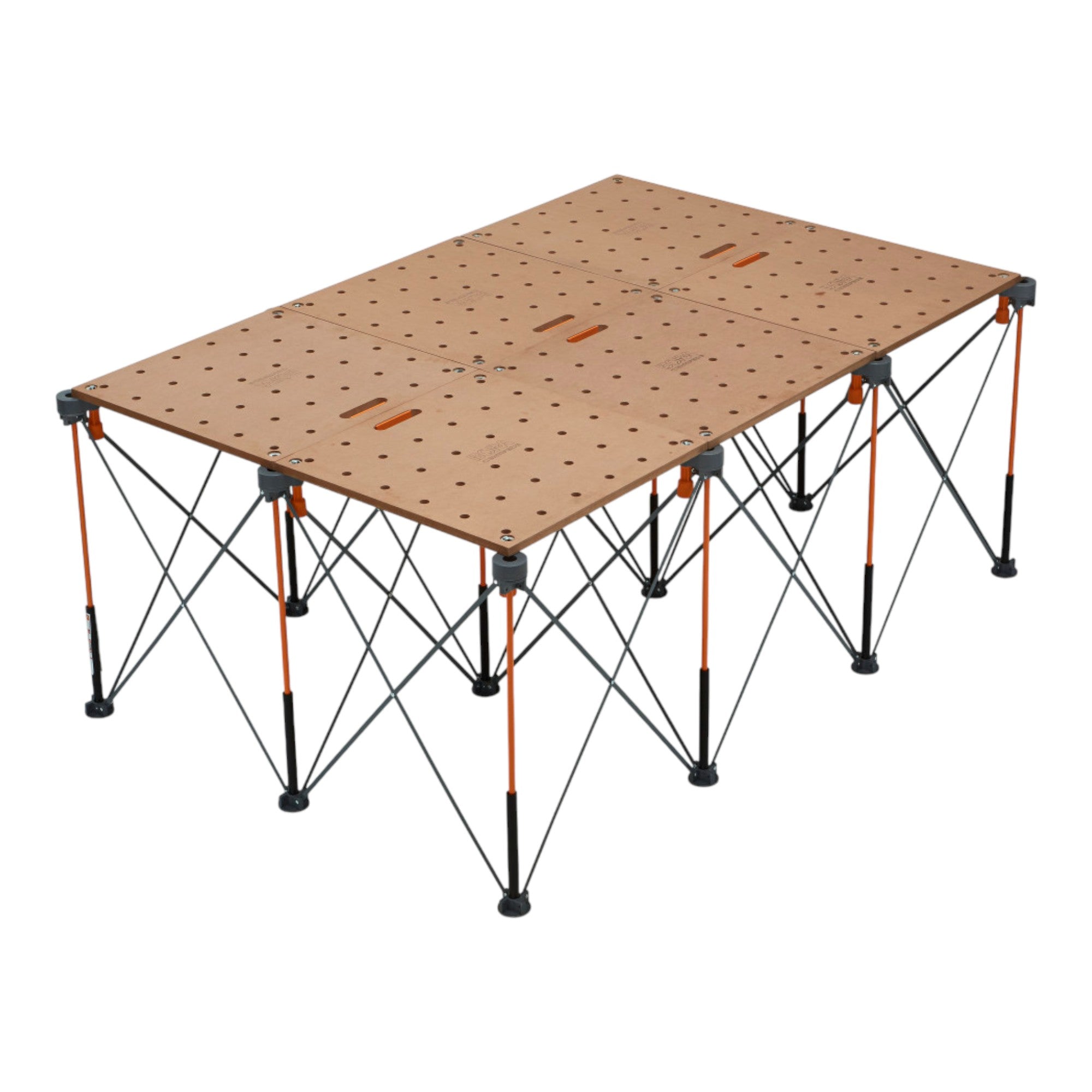 Il telaio BORA Centipede CK12S può essere aperto in pochi secondi senza attrezzi per formare una postazione di lavoro di 122 x 183 cm e, grazie ai suoi resistenti montanti in acciaio, offre una capacità di carico impressionante fino a 2040 kg, rendendolo ideale per progetti impegnativi in cantiere o nel settore del fai da te. I P-Top non marcanti e ruotabili a 360° proteggono il pezzo da lavorare e consentono l'utilizzo di morsetti, X-Cup e altri accessori Centipede, mentre il versatile sistema di bloccaggio offre una presa sicura per i materiali. Nonostante la sua robustezza, il telaio è leggero, mobile e pieghevole in dimensioni compatte di 22,86 cm x 27,94 cm x 96,52 cm, in modo da poter essere comodamente trasportato e riposto nella borsa di trasporto in dotazione. Posizionando un pannello di compensato, MDF o un piano di lavoro, si ottiene in un attimo una superficie di lavoro stabile e flessibile per tagliare, montare o incollare, rendendo il CK12S un banco da lavoro affidabile e versatile per artigiani, falegnami e appassionati del fai da te.