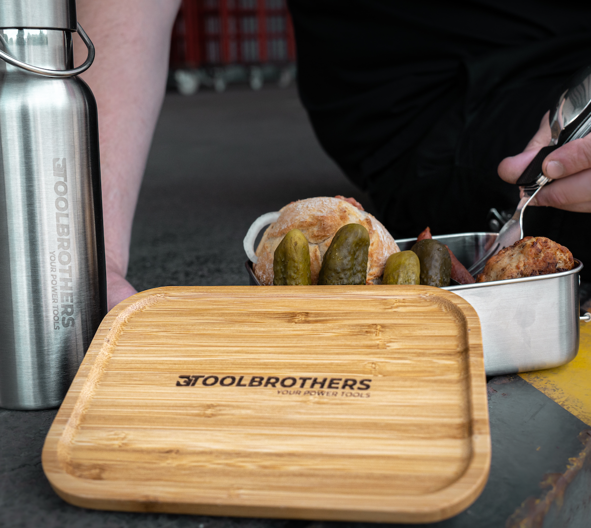 Borsa per il pranzo Toolbrothers con sacca isolante Makita + Lattina per il pane Toolbrothers in acciaio inox con coperchio in bambù 1200 ml + Borraccia in acciaio inox 500 ml