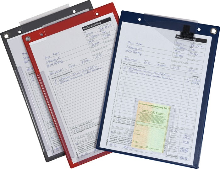 DIN A4 - design robusto con tasca trasparente e scomparto per la patente di guida sul davanti - con chiusura a velcro e cordoncino - retro con piega di espansione extra-large per riporre libretti di servizio, registri, ecc. PU = 10 pezzi