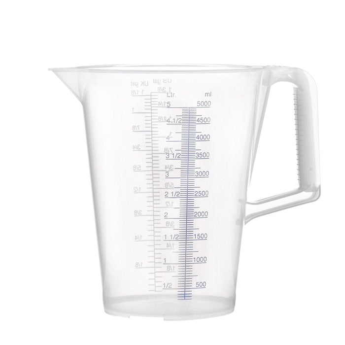 in polipropilene - scala in rilievo, stampata in blu, in MI e GAL su ciascun lato del misurino - manico ergonomico con scanalature per una migliore presa - resistente a sostanze neutre, oli, acidi e alcol - privo di BPA - sicuro per gli alimenti in conformità con (UE) n. 20/2011 e FDA § 21 CFR 177.1520