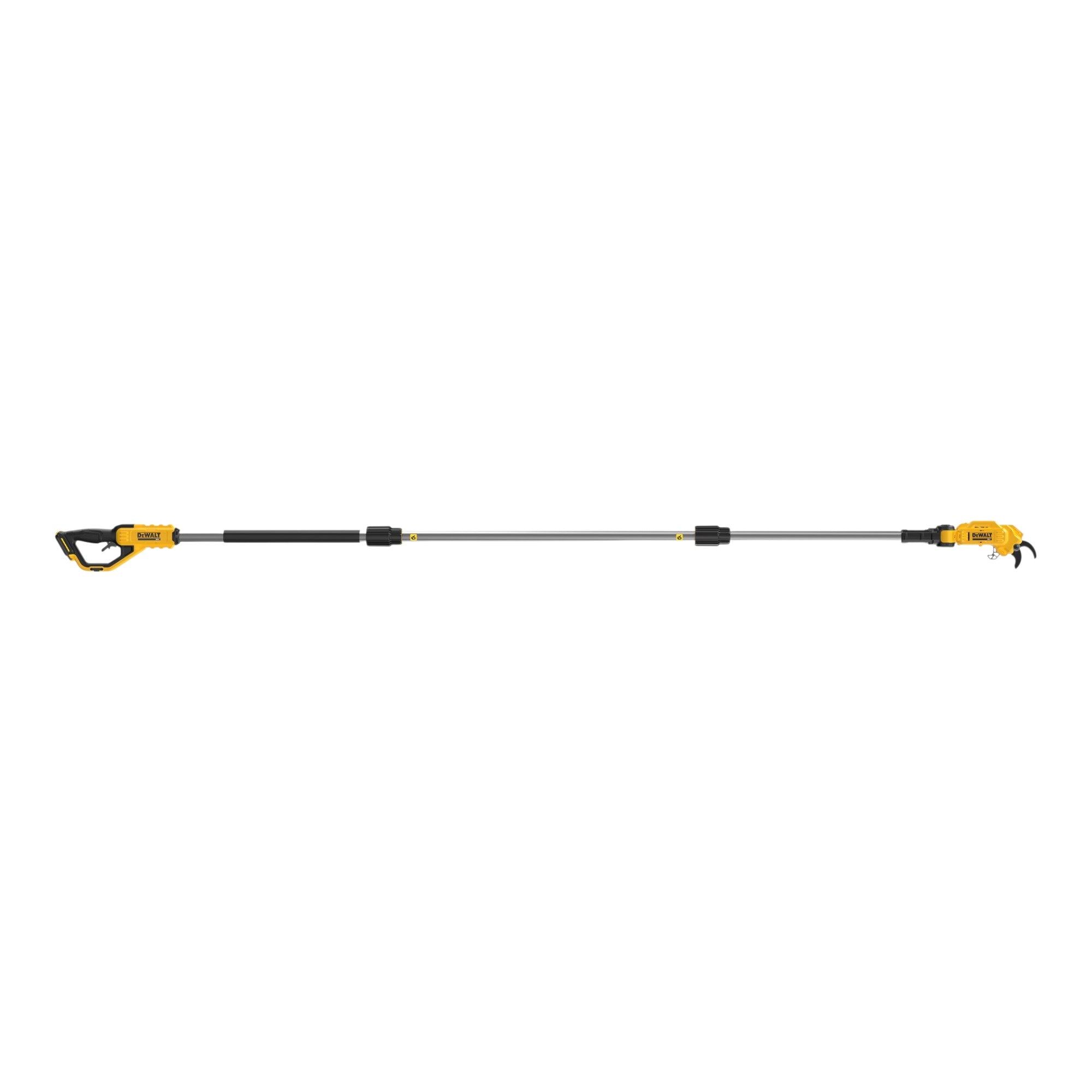 Le cesoie a batteria DeWalt DCMPP569 convincono per la loro struttura ben congegnata e i dettagli pratici che le rendono particolarmente comode da usare. Per riporle, è sufficiente aprire le aste tramite la chiusura a rotazione e riporle singolarmente. L'impugnatura gommata, in combinazione con il design ergonomico e l'asta rivestita in alluminio, garantisce un lavoro senza fatica. L'interblocco di accensione e il secondo interruttore di facile azionamento garantiscono un elevato livello di sicurezza, consentendo di eseguire in modo confortevole e affidabile anche lavori di lunga durata. La testa di taglio compatta è regolabile individualmente in sette posizioni, mentre le lame di taglio sono dotate di un rivestimento antiaderente. Ciò consente tagli puliti, protegge dalla ruggine e facilita la pulizia. Inoltre, è integrato un robusto gancio metallico che consente di estrarre facilmente i rami incastrati. Con una capacità di taglio fino a 38 mm, il potatore a asta è adatto per rami con uno spessore massimo di 32 mm. In combinazione con una batteria da 18 volt e 5 Ah, è in grado di eseguire fino a 1.000 tagli in legno di betulla dello spessore di 10 mm. La sostituzione della lama è semplice e richiede l'uso di un attrezzo. Trattandosi di un modello base senza batteria e caricabatteria, il DCMPP569 è particolarmente interessante per gli utenti che possiedono già batterie da 18 Volt XR o 54 XR FLEXVOLT in tutte le classi Ah.