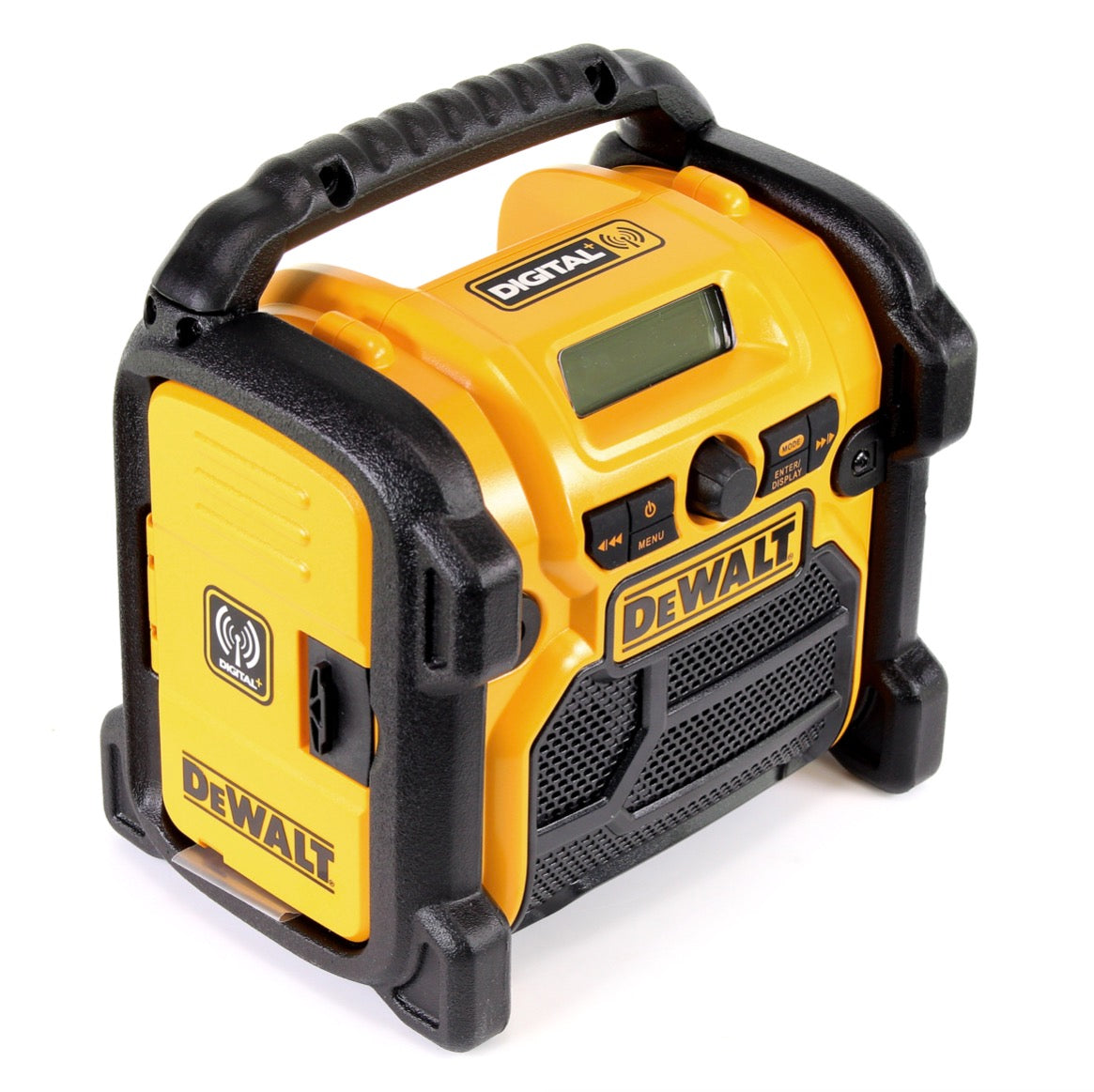 Das DeWALT DCR 020 ist eines der kompaktesten DAB+ / FM Baustellenradios, die es auf dem Markt gibt. Es besitzt ein extrem robustes Gehäuse, dieses garantiert eine maximale Lebenszeit. Ob Sie einfach nur Radio hören möchten oder Ihre Lieblingsmusik über den 3,5 mm AUX Anschluss abspielen möchten, das DeWalt DCR 020 hält Ihnen alle Möglichkeiten offen. Verbundene Endgeräte können in einem Fach am Radio, der sogenannten Tech Box, aufbewahrt werden. Sie können das Radio mit allen gängigen 10,8 V - 18,0 V Einschub Akkus von DeWalt betreiben. Sollten Ihre Akkus einmal leer sein, so sorgt ein 1,8 Meter langer Netzanschluss für maximalen Musikgenuss.