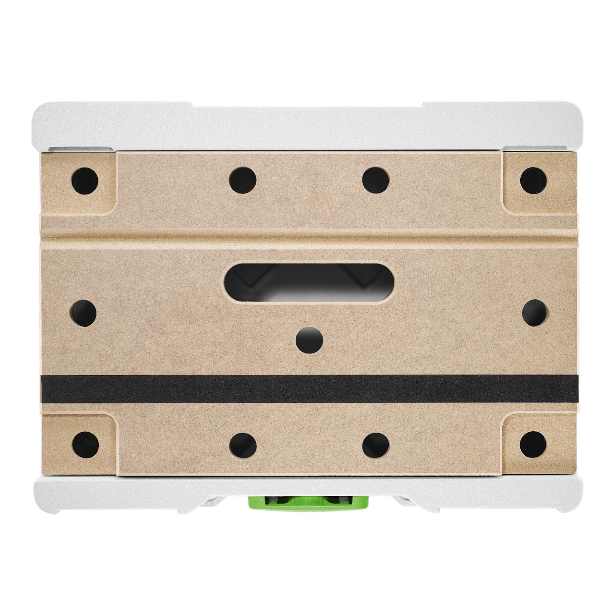 Il Festool SYS3-MFT M 112 è molto più di una semplice valigetta: è un banco da lavoro mobile completo nel pratico formato Systainer. Come postazione di lavoro mobile, è perfetto per gli spostamenti e ti garantisce flessibilità in ogni cantiere o durante i montaggi. Che si tratti di segare, forare o levigare, il robusto pannello forato in MDF nel coperchio ti consente di lavorare senza difficoltà. I morsetti a vite e i tenditori possono essere fissati direttamente al suo interno, in modo da poter fissare in modo sicuro pezzi di varie forme, persino barre e tubi rotondi con un diametro fino a 50 mm. Il supporto adesivo integrato in gomma espansa garantisce una maggiore stabilità e impedisce lo scivolamento durante la lavorazione, anche se non si utilizza il sistema di serraggio. Una volta terminato il lavoro, puoi riporre tutti gli accessori all'interno del Systainer, in modo che tutto rimanga in ordine e a portata di mano. Il SYS3-MFT è versatile e compatibile con tutti i morsetti e i tenditori del tavolo multifunzione MFT di Festool. Grazie all'integrazione nell'intero sistema Systainer di Festool, può essere facilmente collegato e trasportato. Inoltre, convince con dettagli pratici: per la lavorazione di pezzi lunghi è possibile utilizzare un secondo Systainer della stessa altezza (SYS3 M 112 o SYS 1 T-LOC). L'altezza del SYS3-MFT corrisponde esattamente all'altezza di lavoro dei banchi da lavoro Festool KAPEX (KS 120 senza piedini o KS/KSC 60 con piedini), il che lo rende il supporto ideale per il taglio di pezzi lunghi. Questo lo rende un compagno affidabile per i professionisti che apprezzano la mobilità, l'ordine e l'efficienza.