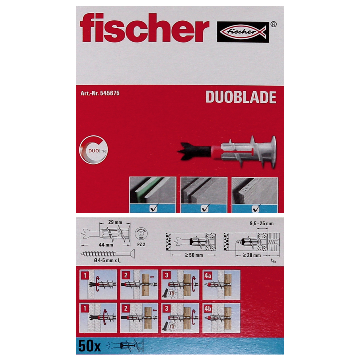 - 250x fischer Gipskartondübel DUOBLADE 44mm ( 5x 545675 )