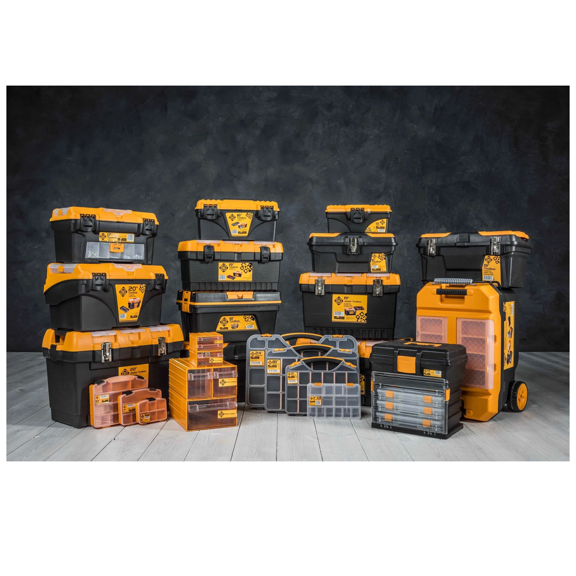 Forte Tools Montagebox mobil, Werkzeugkasten mit Rollen groß in 59,5 x 42 x 38 cm robust mit Metallverschluss und herausnehmbarem Organizer ( 000051144574 )