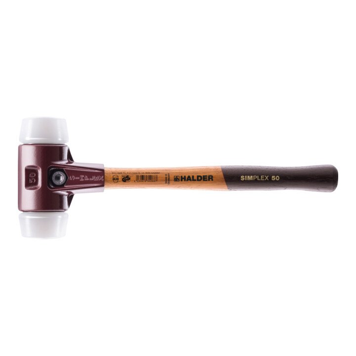 Corpo di serraggio in ghisa malleabile in 2 parti - teste di percussione sostituibili in superplastica bianca - medio-dura - molto durevole - resistente all'usura - impugnatura in legno - percussione medio-dura - campi di applicazione: Lavori di pavimentazione, posa di cordoli, impalcature, costruzione di tensostrutture e capannoni, giardinaggio e paesaggistica, lavori in lamiera, lavori di rigonfiamento, lavori di montaggio/riparazione nel settore automobilistico, costruzione di carrozzerie, montaggio di abitazioni, montaggio di pezzi a spigolo vivo, costruzione di recinzioni, martellatura di cunei, carpenteria, falegnameria