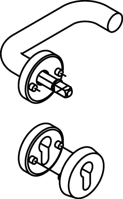con rosetta di sicurezza - in tecnica H con rosette a norma DIN 18255 e DIN EN 1906 in acciaio inox, finitura satinata, composta da: Maniglia a leva 111XAH, diametro 21,3 mm, rosette rotonde 305.21XAH. Rosone rotondo, diametro 55 mm, altezza 10,5 mm. Rosetta di sicurezza 306.23XAES in acciaio inox, rosetta esterna, piena, diametro 55 mm, altezza 12 mm, temprata, rosetta interna, diametro 55 mm, altezza 10,5 mm. Categoria di utilizzo: Classe 4 Protezione antincendio con VK 9 mm, secondo DIN 18273 Resistenza al fuoco: Classe B1 Suggerimento per la progettazione! Verificare tutte le dimensioni e le condizioni strutturali al momento dell'ordine! "
