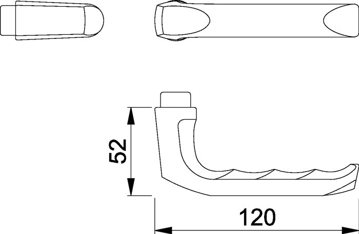 con attacco a perno profilato - lunghezza maniglia 120 mm - profondità maniglia 52 mm - coppie di maniglie predisposte per ante di spessore 27 - 47 mm - quadro 8 mm - DIN sinistra/destra