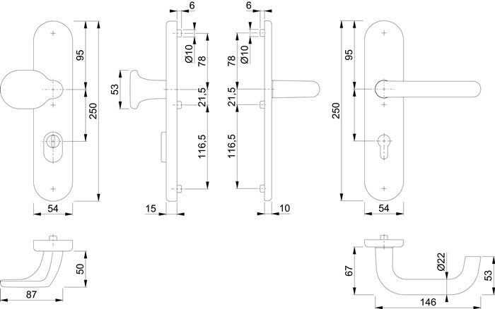 für Abschlusstüren · einbruchhemmend nach DIN 18257 · Knopfschild-Randhöhe: 12 mm · Stahlunterkonstruktion im Innen- und Außenschild · mit Rückholfeder-Paket · mit Schnellstift-Verbindung · DIN links / rechts verwendbar · hochfeste, verdeckte Verschraubung · einschließlich Befestigungsmaterial · Lochung PZ · Widerstandsklasse ES 1