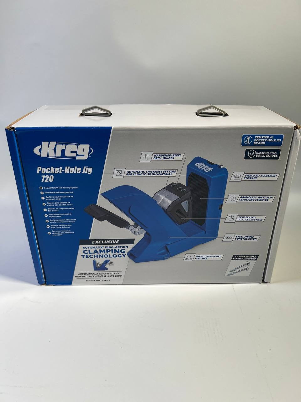 KREG Pocket Hole Jig 720 PRO Taschenloch Bohrschablone ( KPHJ720PRO-INT ) + Basis Station + Stufenbohrer + Bit + Schrauben - Leicht Gebraucht