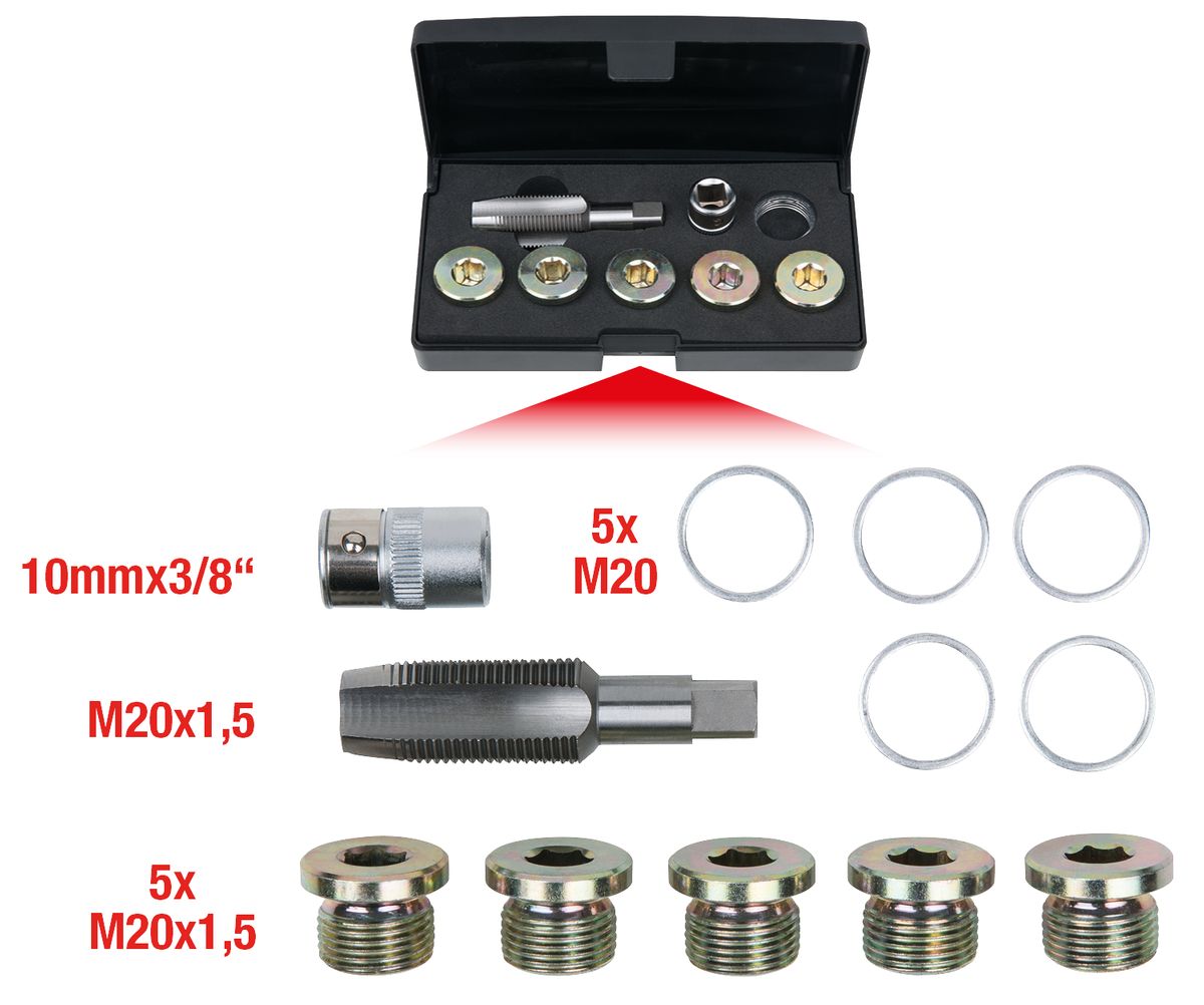 Serie di utensili per viti di scarico olio, 12 pz M20x1,5 - Serie di utensili per viti di scarico olio M20 x 1,5