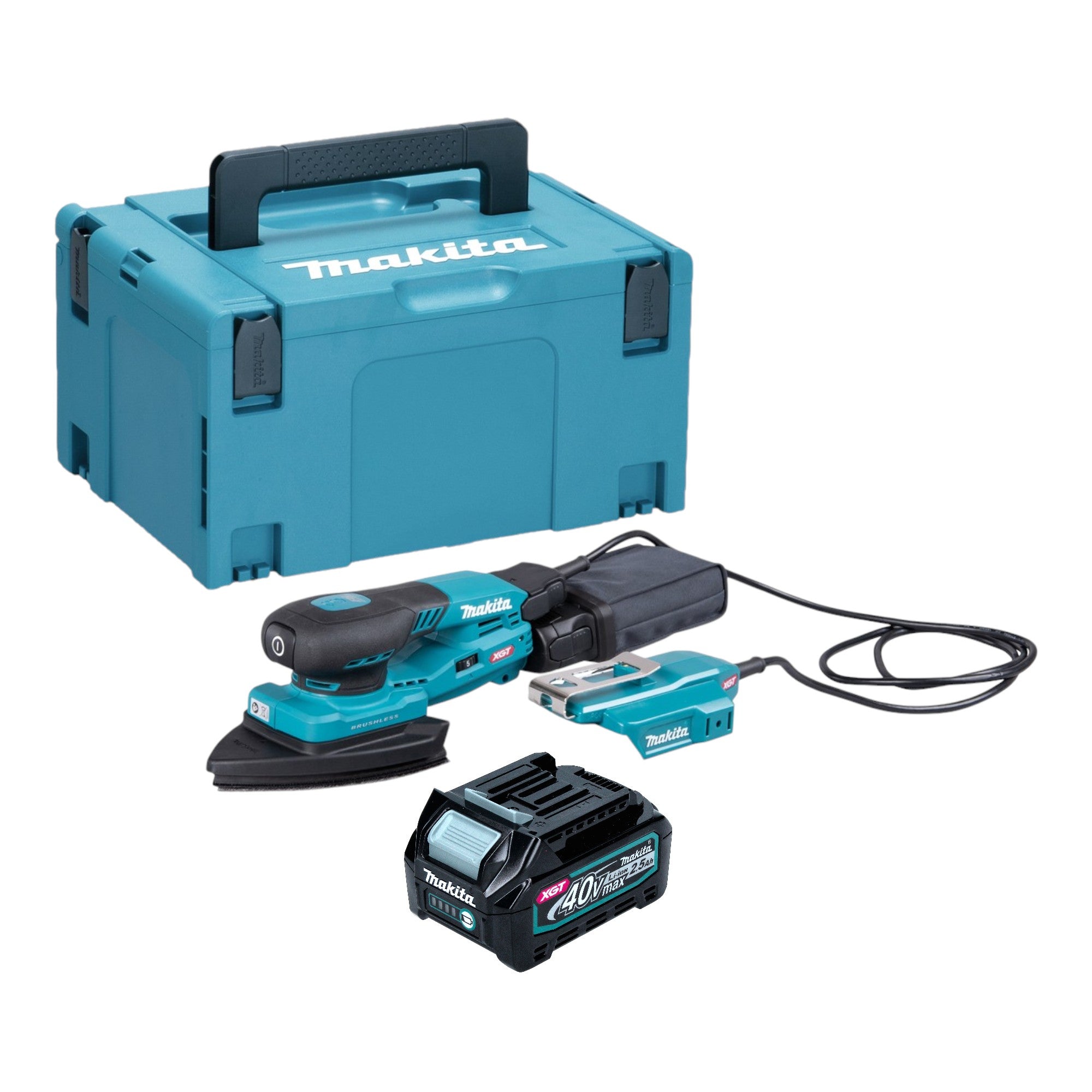 La levigatrice triangolare a batteria Makita BO006CG si contraddistingue per la sua struttura maneggevole e leggera. Può essere alimentata con una batteria da 40 V max. o con una batteria con connettore PDC. Una caratteristica particolare è la possibilità di collegare la batteria separatamente tramite un cavo adattatore, rendendo l'utensile ancora più maneggevole. Ciò è ideale per lavori che richiedono precisione, poiché la batteria può essere trasportata, ad esempio, alla cintura. Un'efficace aspirazione della polvere è resa possibile dalla piastra di base, che convoglia la polvere direttamente nel contenitore integrato o può controllare un sistema di aspirazione esterno collegato all'apparecchio tramite Bluetooth tramite il sistema Auto-Start Wireless (AWS). Questo innovativo sistema garantisce l'attivazione automatica dell'aspirapolvere non appena si accende la levigatrice. La frequenza di oscillazione regolabile della levigatrice consente di ottenere risultati perfetti su diversi materiali. Grazie all'elettronica costante, la velocità rimane stabile anche sotto carico, garantendo un risultato di levigatura uniforme. Il motore brushless non solo non richiede manutenzione, ma è anche particolarmente resistente, rendendo il Makita BO006CG uno strumento affidabile per qualsiasi officina.