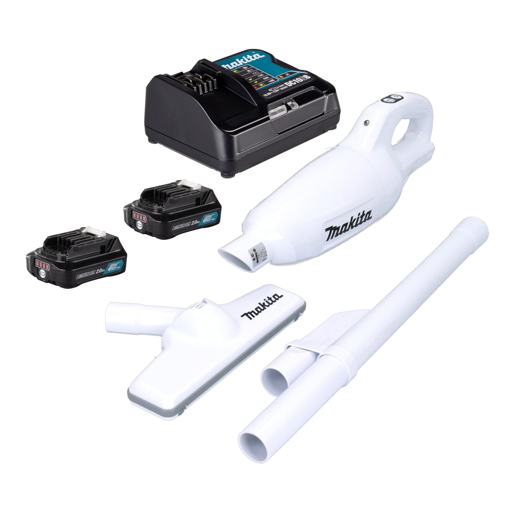 Makita CL 108 FDSA2W Aspirapolvere a batteria 12 V 0,6 l + 2x batteria 2,0 Ah + caricabatteria