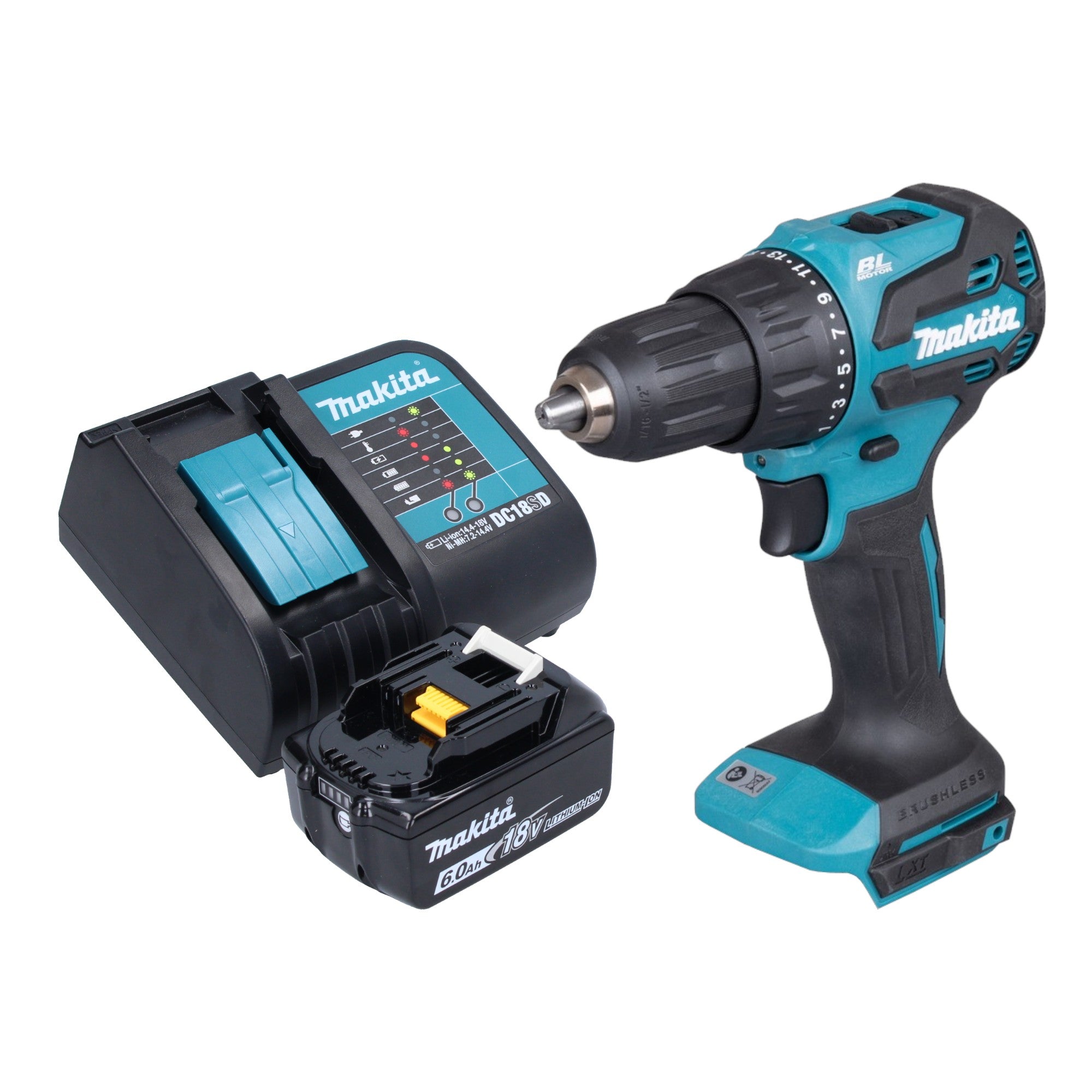 Makita DHP 490 SG1 Trapano avvitatore a percussione a batteria 18 V 65 Nm Brushless + 1x batteria 6,0 Ah + caricabatteria