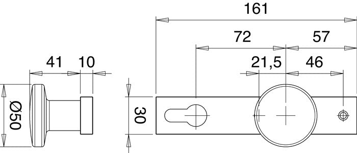 Piastra corta per serratura con pomolo diritto - distanza 72 mm - PZ forato - piastra piena - adatta a tutte le serrature con seguitore da 8 mm - pomolo con filettatura M-12 - distanza tra i fori per le viti 67 mm - spessore 10 mm - altezza 161 mm - larghezza 30 mm - connessione a vite visibile - DIN sinistra/destra - alluminio - fornito senza perno e viti