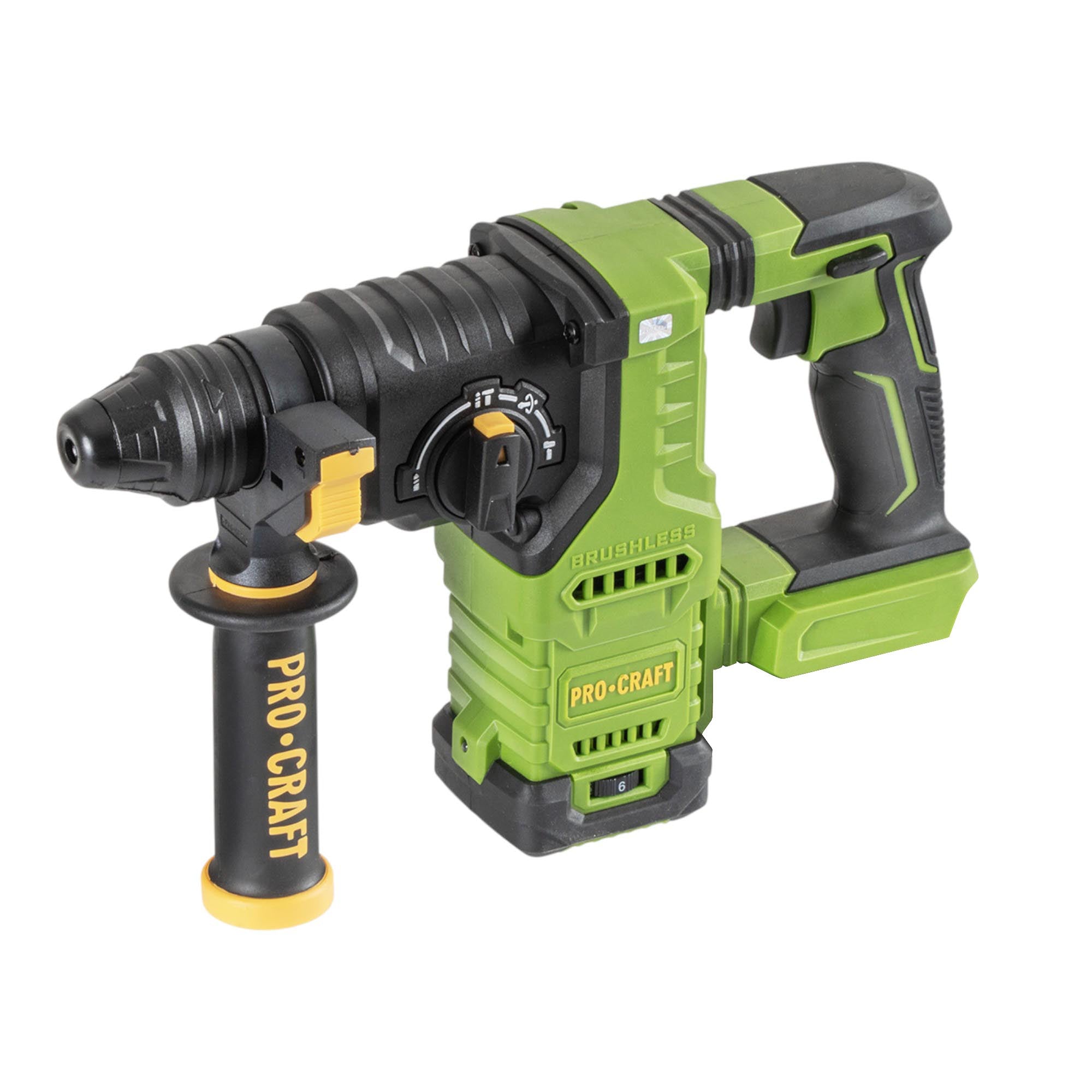 Il trapano a percussione a batteria Procraft PHA30 è un utensile versatile, potente e maneggevole, progettato sia per uso professionale che privato, ideale per forare, perforare e per lavori di demolizione leggeri. Dotato di un motore brushless, il trapano a percussione offre prestazioni più elevate con una maggiore durata, una minore manutenzione e un minore riscaldamento anche durante gli utilizzi prolungati, consentendo di lavorare in modo particolarmente efficiente su materiali duri come calcestruzzo, muratura o pietra naturale. Grazie al sistema SDS Plus, gli accessori come punte per calcestruzzo, scalpelli piatti o appuntiti, scalpelli sagomati, punte a spirale e scalpelli per legno possono essere sostituiti rapidamente e senza attrezzi, consentendo la massima flessibilità nei progetti più diversi. Il trapano a percussione dispone di tre modalità di lavoro: foratura per legno, metallo o plastica, foratura a percussione per materiali particolarmente duri e scalpellatura per lavori di demolizione o rimozione di materiale. Il controllo integrato della velocità e la rotazione in senso orario e antiorario consentono di adattare con precisione la velocità al materiale specifico e facilitano l'estrazione della punta, mentre l'energia di percussione di 2,8 joule fornisce una potenza sufficiente per eseguire in modo efficiente anche i lavori più impegnativi. Il design leggero ed ergonomico, in combinazione con un'impugnatura aggiuntiva, garantisce una comoda maneggevolezza e un lavoro sicuro per lunghi periodi di tempo, anche in posizioni difficili o in punti difficili da raggiungere. Il PHA30 è perfetto per lavori edili come la foratura di calcestruzzo, muratura e pietra naturale, per ristrutturazioni come la scalpellatura di intonaco o la rimozione di piastrelle e per una vasta gamma di progetti privati o professionali che richiedono un utensile potente, preciso e facile da usare.