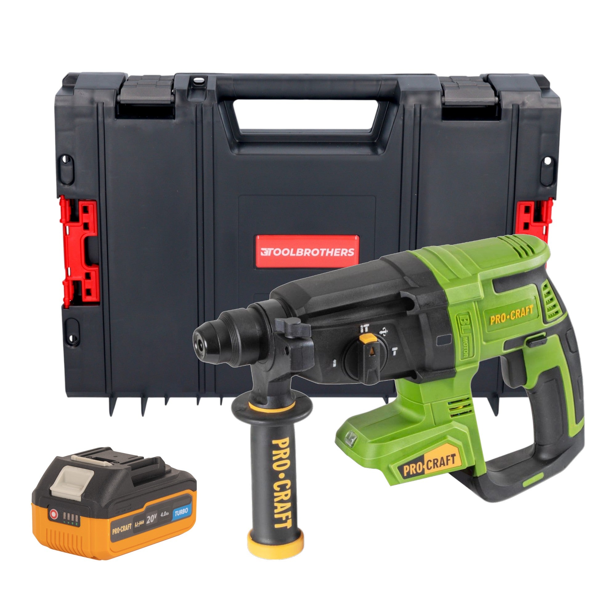 Martello perforatore a batteria Procraft PHA40bb 20 V 2,6 J SDS plus Brushless + 1x batteria 4,0 Ah + valigetta portautensili RHINO - senza caricabatteria